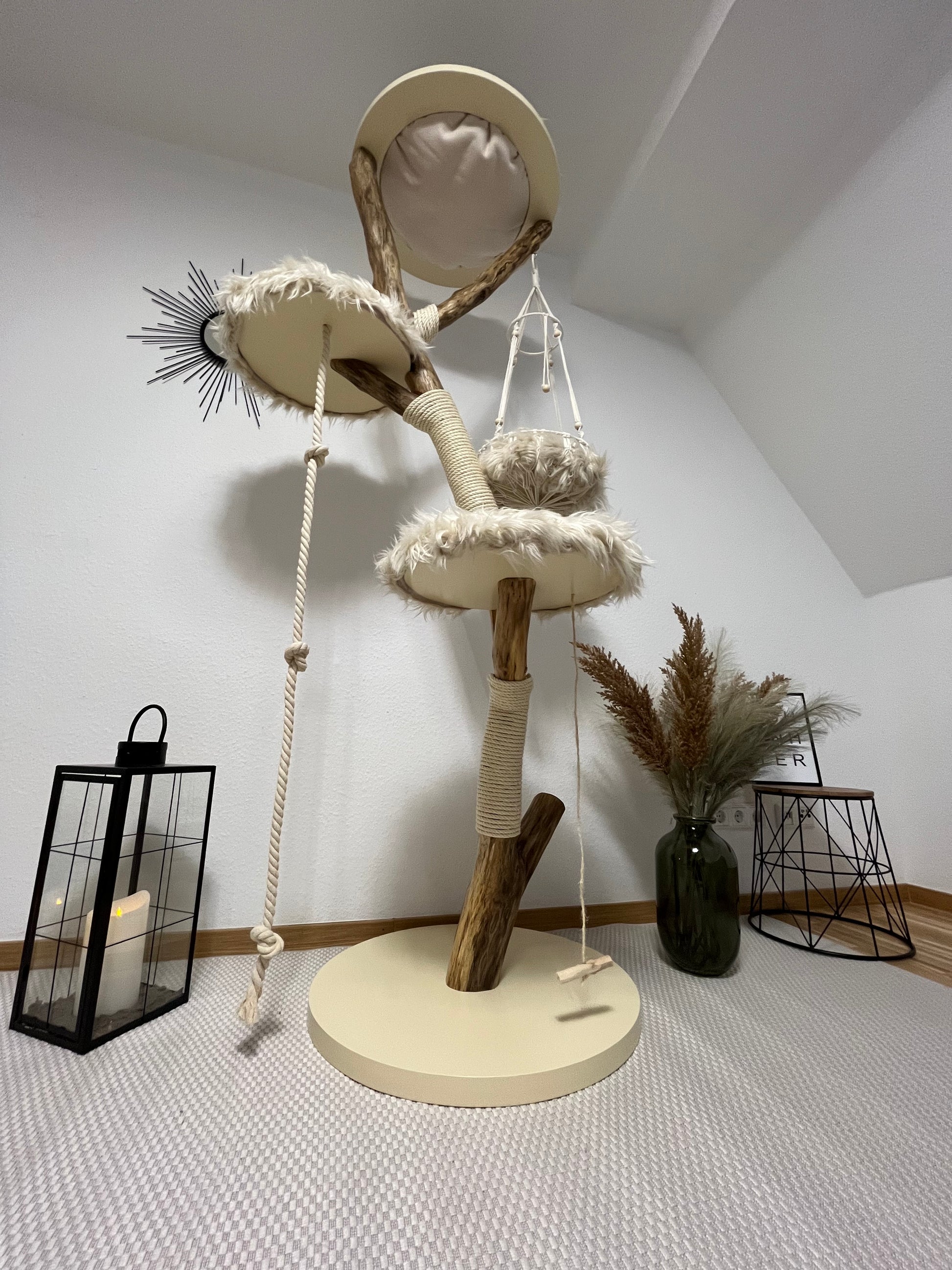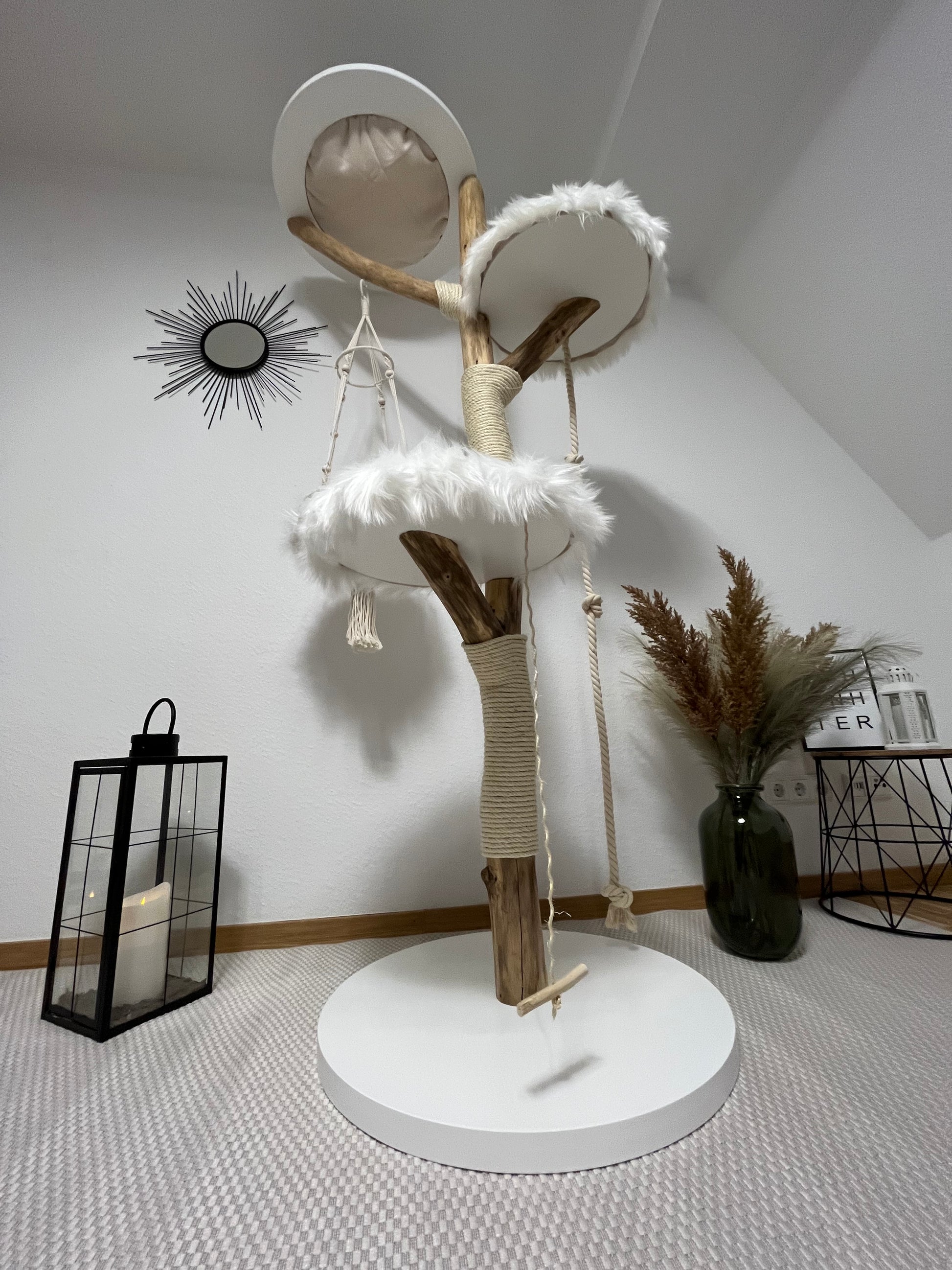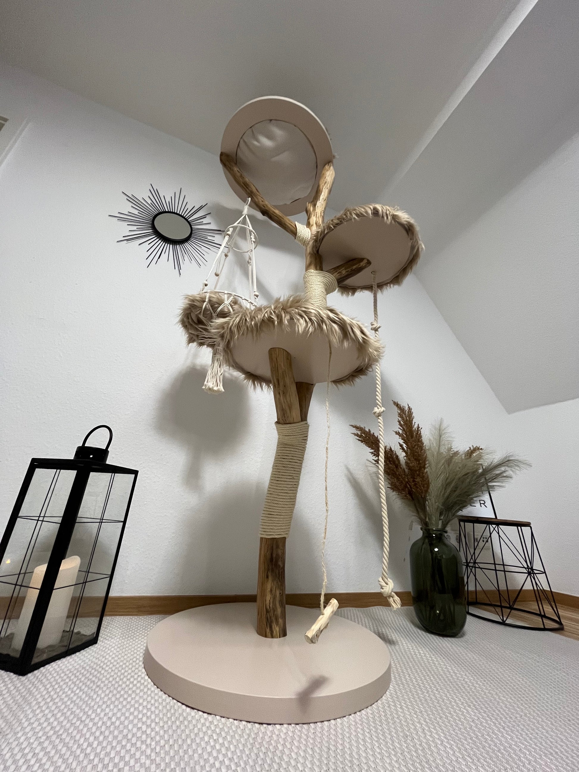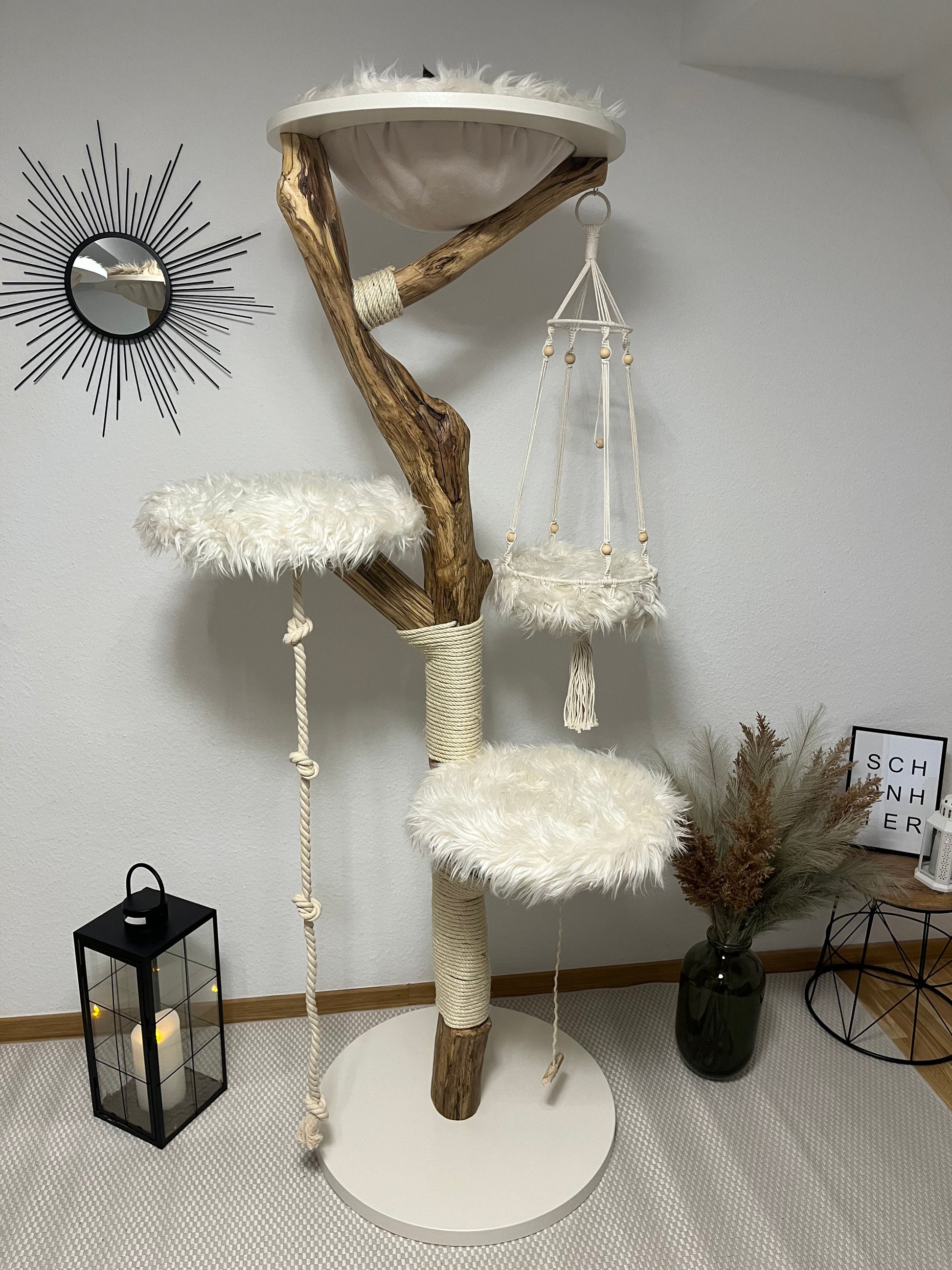 Das Produktfoto dient als Beispiel, wie Ihr Kratzbaum danach aussehen könnte. Der natürlich gewachsene Stamm unterscheidet sich vom gezeigten Artikel.