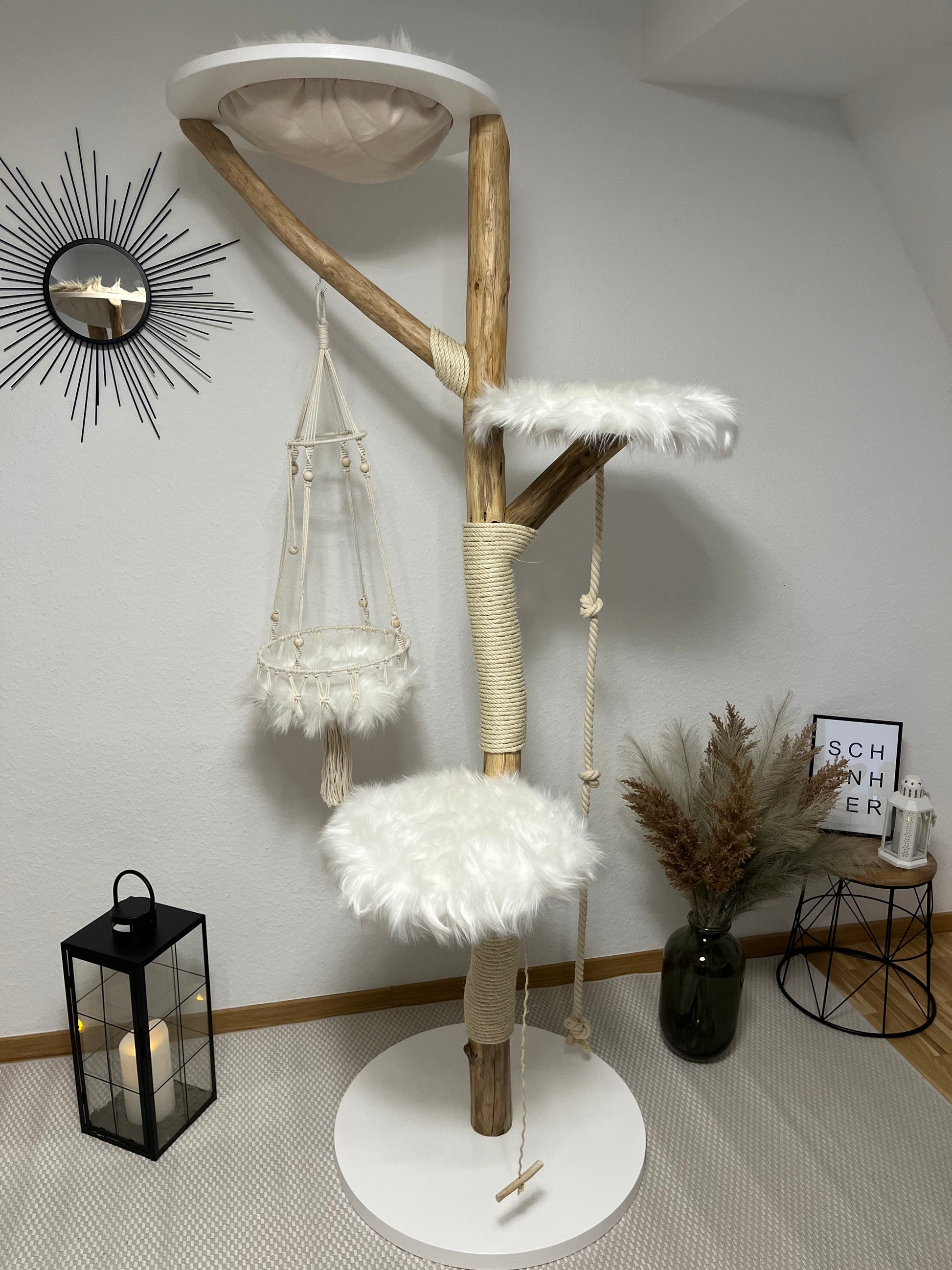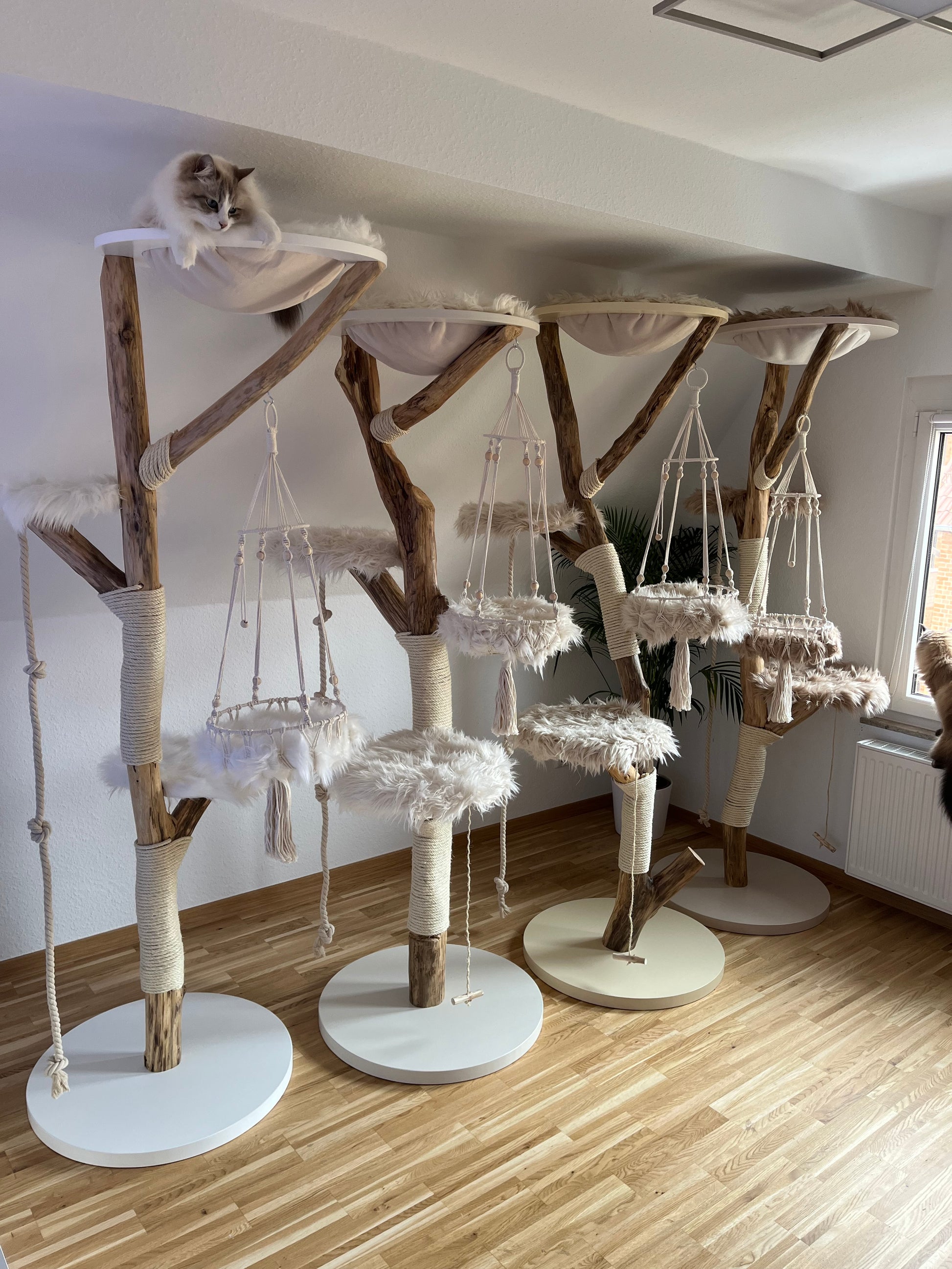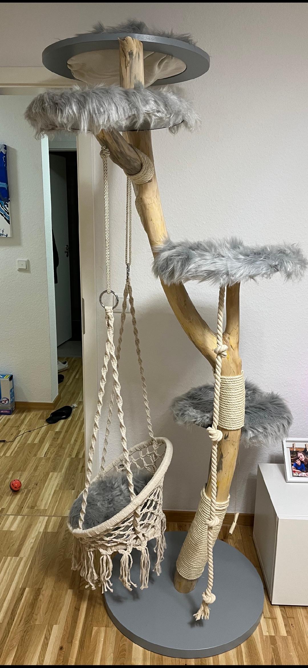 Nicht nur unsere beiden Stubentiger (Norweger) sind rundum glücklich – wir auch. Die hohe Qualität der natürlichen Materialien, die sorgfältige Verarbeitung und die Ästhetik machen den Baum zu einem Möbelstück, das wir uns gerne in die Wohnung stellen. Hervorzuheben ist außerdem die Lieferung und der Aufbau vom Chef persönlich. Vielen Dank! Wir werden sicherlich bald noch ein, zwei Kratzbäume bestellen.